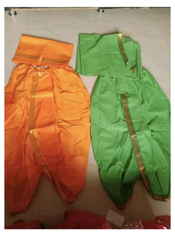 This dhoti-dupatta set preserves the classic dhoti drape while offering a comfortable, wrinkle-resistant art silk structure that stays refined throughout the day. The ready-made design eliminates folding, tying, and pleating, making it ideal for weddings, rituals, festive gatherings, and traditional ceremonies.